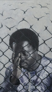 Oil on Canvas Born in South Sudan, Jeffah Thabach was separated from his parents at six and spent 22 years