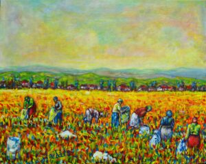 Lavoratrici sul campo, Acrilico su tavola, 24x30cm Field Workers, Acrylic on Board, 24x30cm