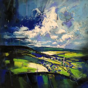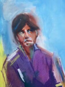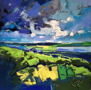 “Un fugace silenzio indugia mentre la tempesta si ritira, lasciando la terra immersa in una luminosa rinascita”. Tecnica: Pastelli morbidi