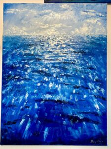 The painting “The Sea after the Storm” shows an amazing interplay of colors and shapes, where deep blue and green