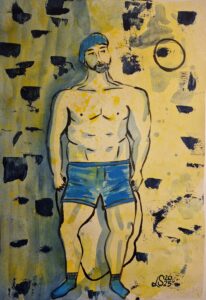 “Gym time” Opera che ritrae un atleta amatoriale, che pratica sport con tranquillità, dedizione e forza. Opera che trasmette calma