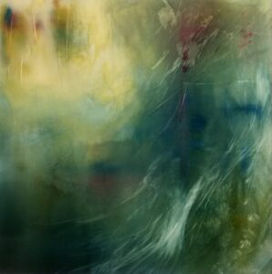 Olio all’acqua su tela, 110 x 110 cm L’opera “Sei al sicuro” fa parte di un flusso continuo di ricerca