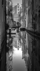 Qui la città non si riflette soltanto, ma si sdoppia, diventando quasi un mondo parallelo.