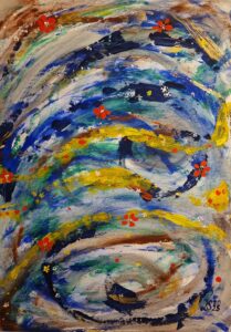 Dipinto astratto con piu’ strati di colore sfumati con il pennello e le mani