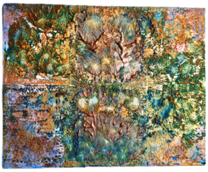 Opera realizzata con colori acrilici su tela con l’utilizzo di pennelli e spatole. Misure 70×70 cm