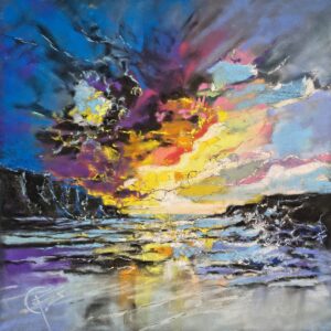 Opera realizzata con tecnica mista, colori acrilici, pastelli ad olio e terre su tela con fondo materico. Misure 30x30cm