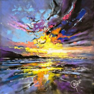 In questa opera ho voluto catturare l’incontro vibrante tra emozioni e colori, usando pastelli a olio e inchiostro. Ogni linea