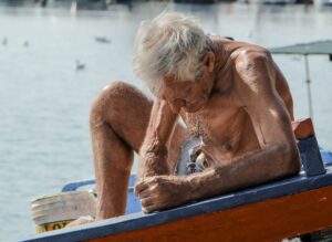 Un vecchio pescatore di Milazzo (Me) ripara la propria imbarcazione da pesca unico sostentamento economico