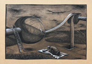 Si tratta di un’opera simbolica che indaga pittoricamente lo stato di sogno come non separato da quello di veglia. Le