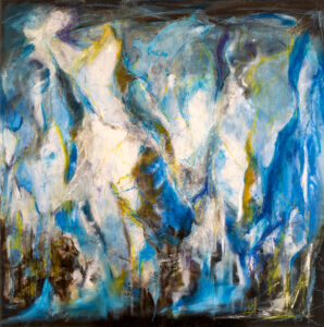 Olio all’acqua su tela, 110x110cm L’opera “Sono qui” fa parte di un flusso continuo di ricerca artistica che parte dalla
