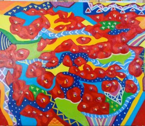 L’ Abraccio – 80 x 60 – anno 2024 – acrilico su tela – tecnica mista. Rappresenta l’abbraccio : fra