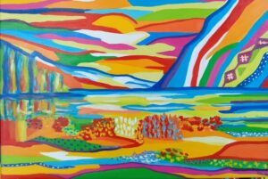 TURBINIO Un vortice di colori in movimento perpetuo. Blu, gialli e rossi si intrecciano in gesti circolari spontanei, catturando l’energia