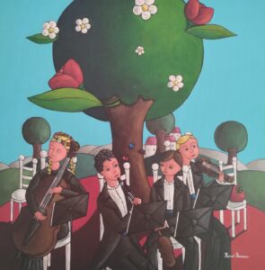Nel cielo cupo, un lampo ardente, Di giallo vivo e luce presente. La nube nera si fa da parte, Un