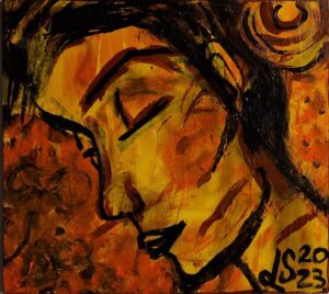 Water-based oil on canvas, 100 x 150 cm The work “Suspended Time” is part of a continuous artistic exploration that