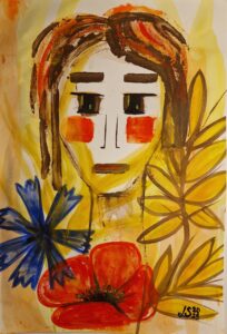 Summer An explosion of color. In this acrylic painting on paper with a palette knife, I depict a female face—a