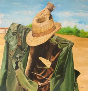 “Standing in the wind like a fragment of memory. The scarecrow: a silent voice of the past, still keeping watch.
