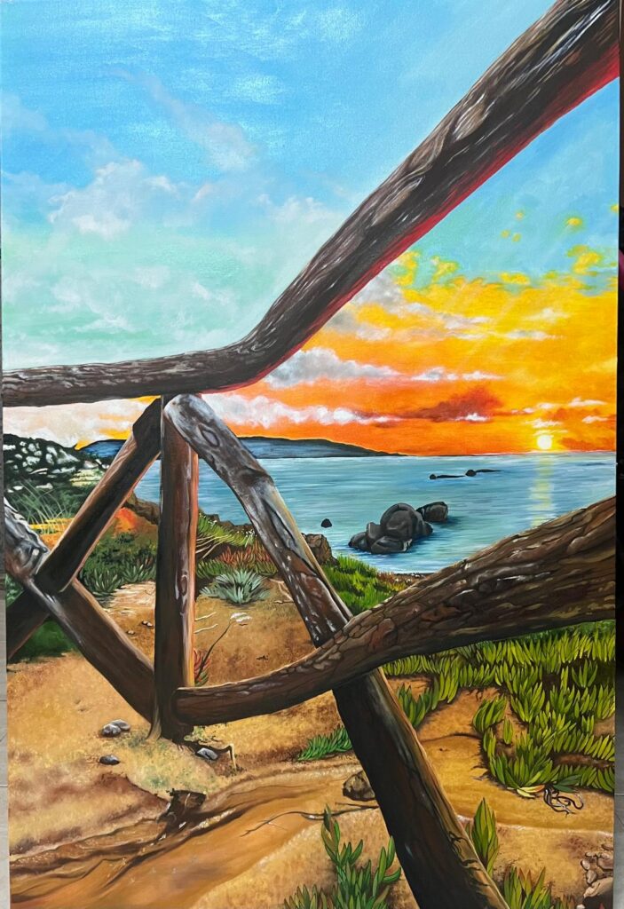 “Un improvviso bagliore squarcia la tempesta, spargendo speranza sulla terra selvaggia e aperta.” Tecnica: Pastelli morbidi su carta Canson Velvet, 30×30 cm Questo paesaggio evocativo…