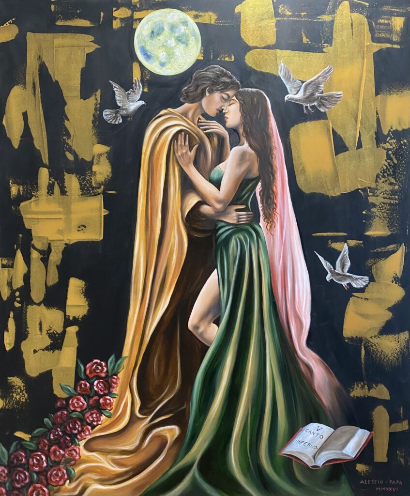 L’opera si rifà alla vicenda di Paolo e Francesca, appunto nel V canto della Commedia di Dante. Ho ideato l’opera creando le due figure unite…