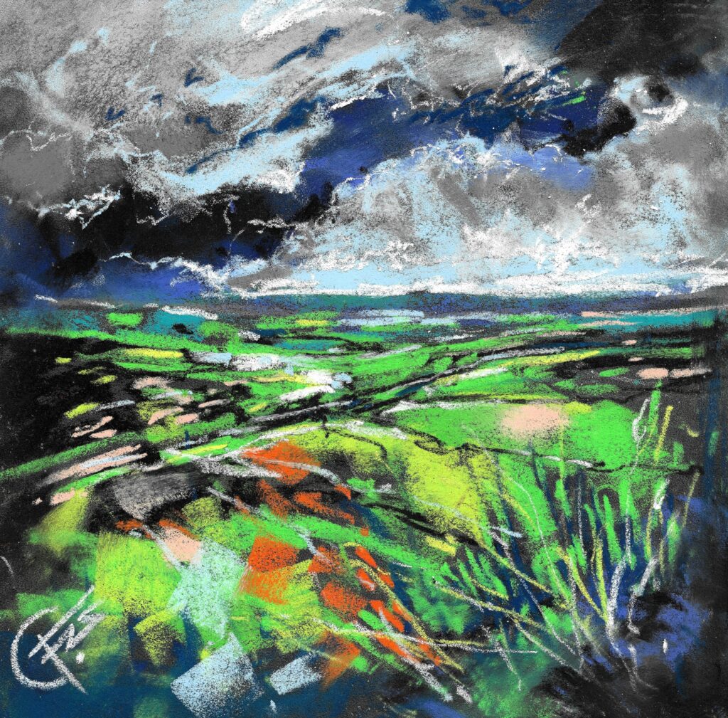 “Quando il cielo minaccia tempesta, la terra risponde con lampi di colore.” Tecnica: Pastelli morbidi su carta Canson velvet, 20x20cm Descrizione: Il cielo si gonfia…