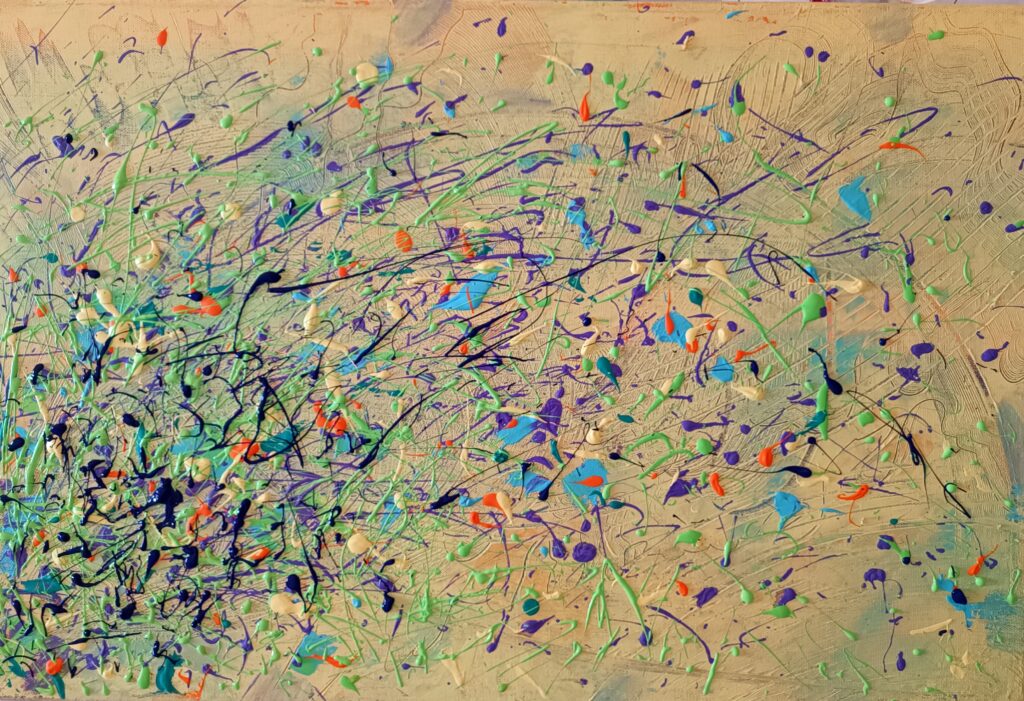 “Silence in the Noise” is an abstract study of the delicate balance between chaos and tranquility. In this work, I intertwine bright, energetic brush strokes…