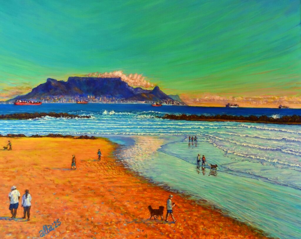 Big Bay Beach and Table Mountain (Cape Town), on a sunny afternoon. 50cmx42cm, Acrylic on Canvas