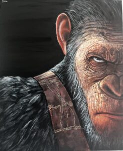 Isolo una punchline della trap (“il gorilla + la capra”) e la trasformo in immagine per svuotarne la retorica autocelebrativa.