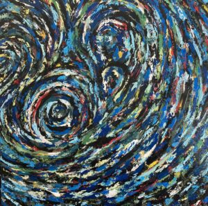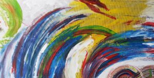 TURBINIO Un vortice di colori in movimento perpetuo. Blu, gialli e rossi si intrecciano in gesti circolari spontanei, catturando l’energia