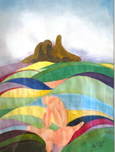 Il mio acquerello su carta raffigura il legame tra uomo e natura, con il Monte di San Marino e le