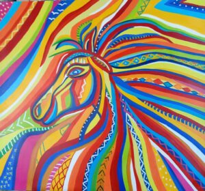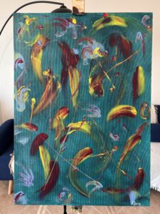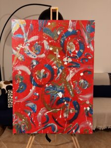 In “Freedom,” the energy of color and movement becomes a visual embodiment of inner independence. The vibrant brushstrokes and spontaneous