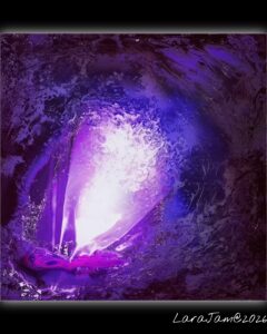 “Inner Pulse” is a soulful abstraction that captures a quiet explosion of inner awakening. The textured core, dark and mysterious,