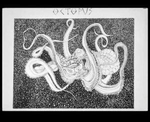 Un abisso stellato che abbraccia un polpo. China su carta 50*70